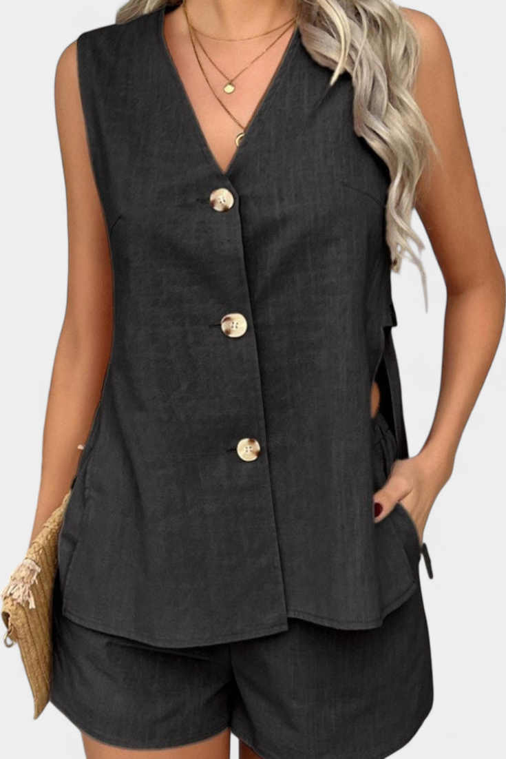 • Chemise sans manches avec décolleté en V et boutons pour un look structuré et propre