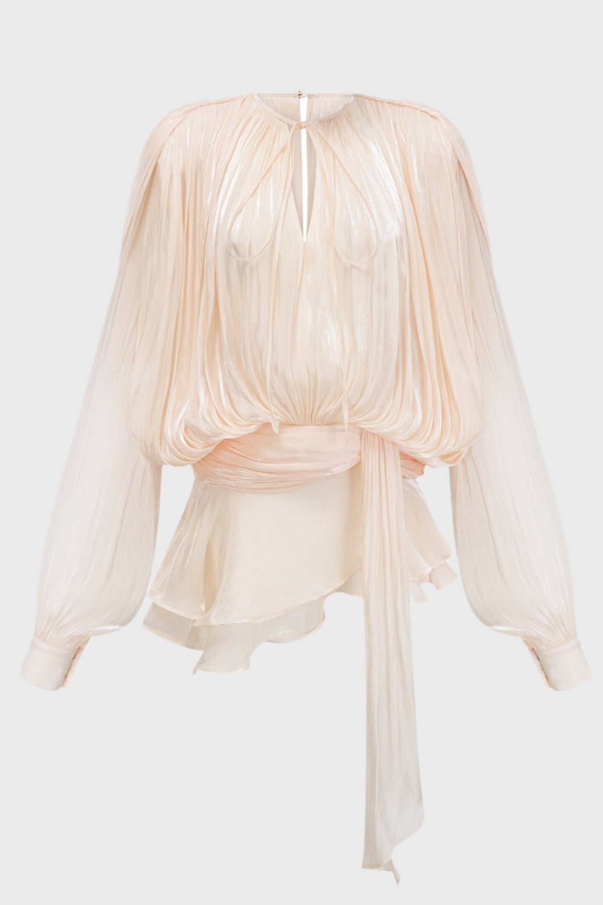 • Manches longues avec poignets boutonnés et fermeture à nœud au cou pour plus de raffinement