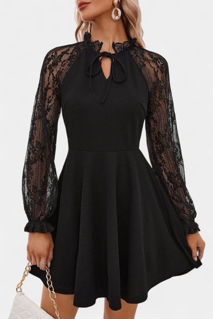 Radmila Robe A-Line avec Corps Noir et Jupe Fleurie en Contraste