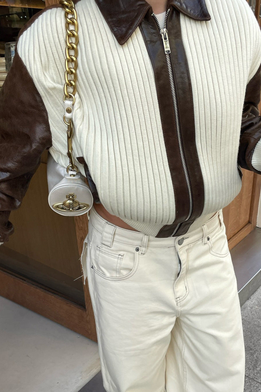 Veste en Tricot à Blocs de Couleur